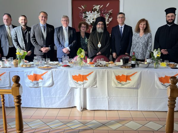 His Grace Bishop Kyriakos was joined by the parish priest reverend father Nicholas Georgiou, the High Commissioner of Cyprus Mrs Martha Mavromatis, Mr Bruce Atkinson MLC, Member of the Eastern Region, who represented the leader of the Opposition Mr Mathew Guy, Cr Nick Stavrou from the city of Boroondara, Community Leaders and other Dignitaries.