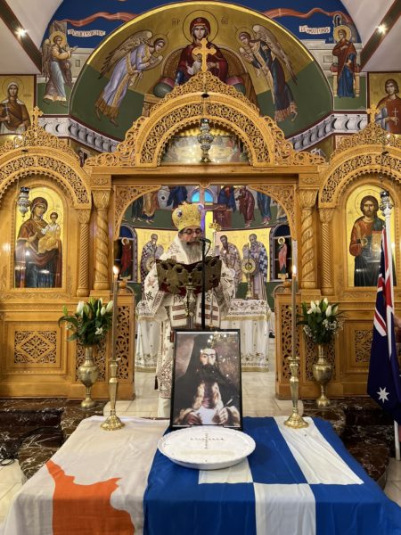 On Sunday, 10 July 2022 with the blessing of His Eminence Archbishop Makarios o Australia, His Grace Bishop Kyriakos of Sozopolis attended the Holy Church of the Entrance of the Theotokos into the Temple, Balwyn to preside in the Divine Liturgy. His Grace also conducted the memorial service for the memory of Archbishop Kyprianos of Cyprus, Bishops Chrysanthos of Paphos, Meletios of Kiti, Lavrentions of Kerinia and other clergy, as well as civilians, who were executed by the Ottoman Rulers on the 9th of July 1821 in Cyprus.