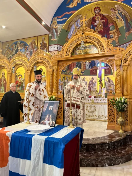 His Grace Bishop Kyriakos of Sozopolis attends Entrance of the Theotokos into the Temple, Balwyn to preside in Divine Liturgy and conduct a memorial service for Cypriot Church leaders in the Greek War of Independance.