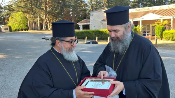 His Eminence was received with respect by His Grace Bishop Kyriakos of Melbourne, together with the Parish Priest, Archimandrite Irinaios, and members of the parish community.