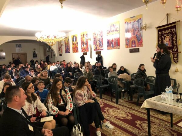 După slujbă a urmat conferința „Frumosul și rușinea în ziua de azi”, susținută de Protos. Nicodim Burcea, starețul Mănăstirii „Buna Vestire” din Mirabella Eclano.