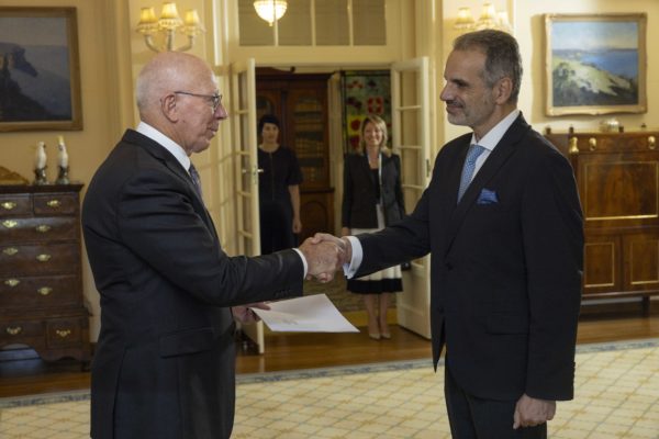 The Ambassador of Greece in Australia, Mr. Stavros Venizelos, presented today his credentials to His Excellency General the Honourable David Hurley AC DSC (Retd), Governor-General of the Commonwealth of Australia, officially assuming his new duties. On this occasion, the Ambassador addresses a personal message to the Greek community in Australia.