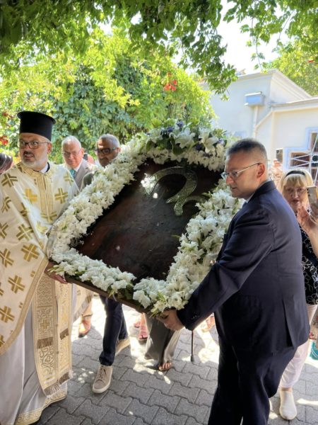 Following the liturgy, a solemn procession of the sacred icon of Panagia Vlacherna took place in the courtyard of the church.
