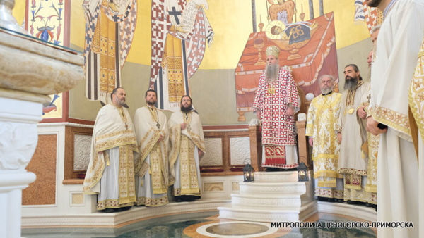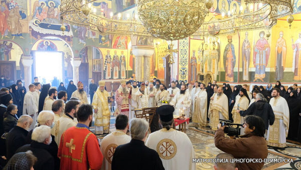 The Divine Liturgy and parastas at Holy Resurrection Cathedral in Podgorica on Sunday were celebrated by His Grace Bishop Joanikije of Budimlja and Nikšić, the administrator of the Metropolis of Montenegro after the Metropolitan’s repose, His Grace Bishop Kirill of Bueonos Aires, His Grace Bishop Metodije of Dioclea, and His Grace Bishop Atanasije, retired hierarch of Zakholm and Herzegovina, reports the Metropolis of Montenegro.