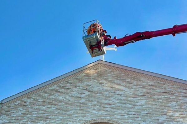 Next, His Eminence climbed to bless the fourth-story cross at the new Mount Tabor Community Center at Transfiguration Greek Orthodox Church in Austin, Texas.