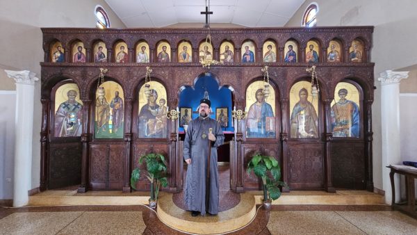There he visited the Holy Church of the Apostles Peter and Paul and Saint Nektarios, which is served by Father Vasilios Labi. Behind the Church, a trisagion memorial prayer was offered at the grave of Father Gregorios.