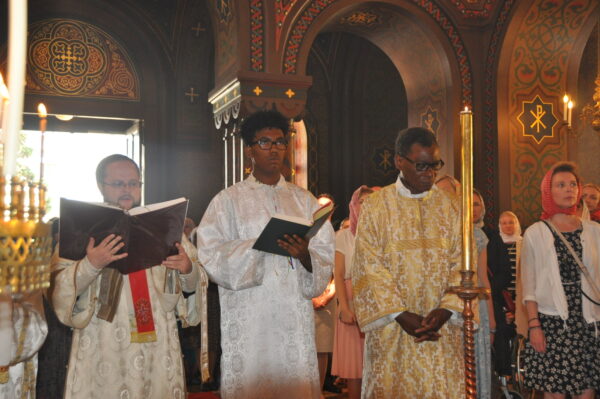 His Eminence was assisted by Bishop Alexander of Vevey, vicar of the diocese Western Europe; Archpriest Pavel Tsvetkov, the church’s ecclesiarch; Archpriest Peter Perekrestov, ecclesiarch of the Cathedral of our Lady the Joy for All the Afflicted in San Francisco; and Hieromonk Ioann (Kopeikin), pro-rector for development, Ss Cyril and Methodius Institute of Post-Graduate Studies (CMI).