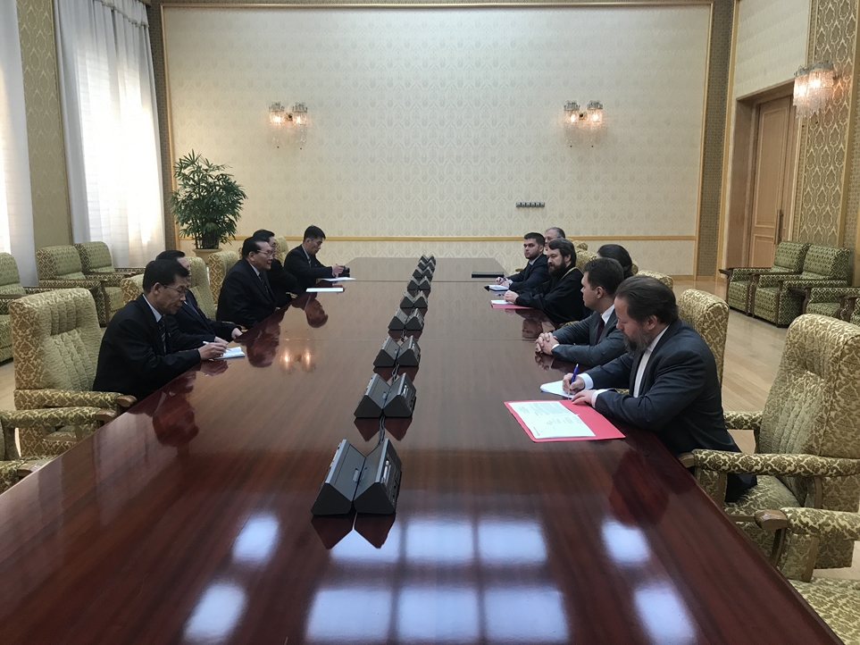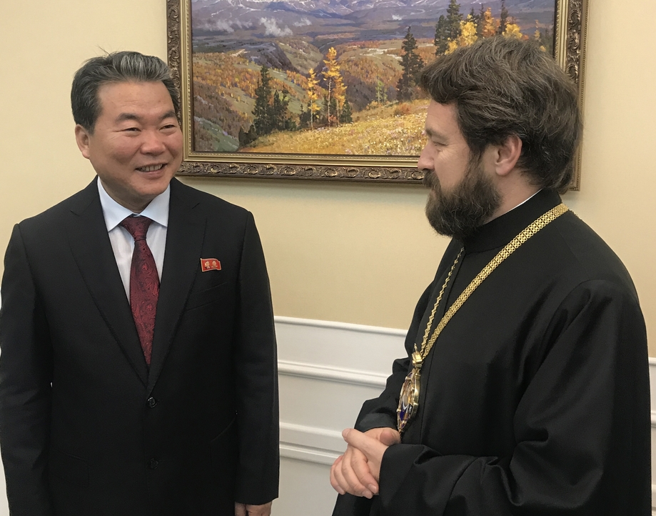On 26 November 2018, Metropolitan Hilarion of Volokolamsk, chairman of the Moscow Patriarchate’s Department for External Church Relations, met with Mr. Kim Yong-dae, vice-president of the Supreme People’s Assembly of the Democratic People’s Republic of Korea, and with Mr. Im Chon-il, deputy minister of Foreign Affairs of the DPRK. Taking part in the meetings with the Korean statesmen were Archbishop Sergy of Solnechnogorsk, administrator of the Moscow Patriarchate’s parishes in East and Southeast Asia; Mr. Alexander Matsegora, Ambassador Extraordinary and Plenipotentiary of the Russian Federation to the DPRK; Mr. Nikita Chaplin, first deputy chairman of the Moscow Region Duma; Mr. Dmitry Petrovsky, DECR staff member; and Mr. Vladislav Sorokin, attaché of the Russian Embassy in Pyongyang.