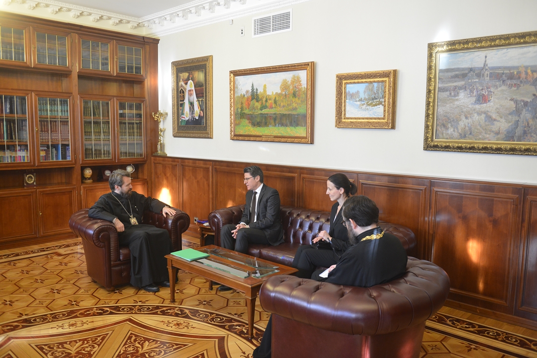 Metropolitan Hilarion warmly greeted the guests at the Synodal department in charge of foreign relations of the Russian Church. Ambassador Agius thanked him for the meeting and told him about his career as a diplomat and his work in Moscow.