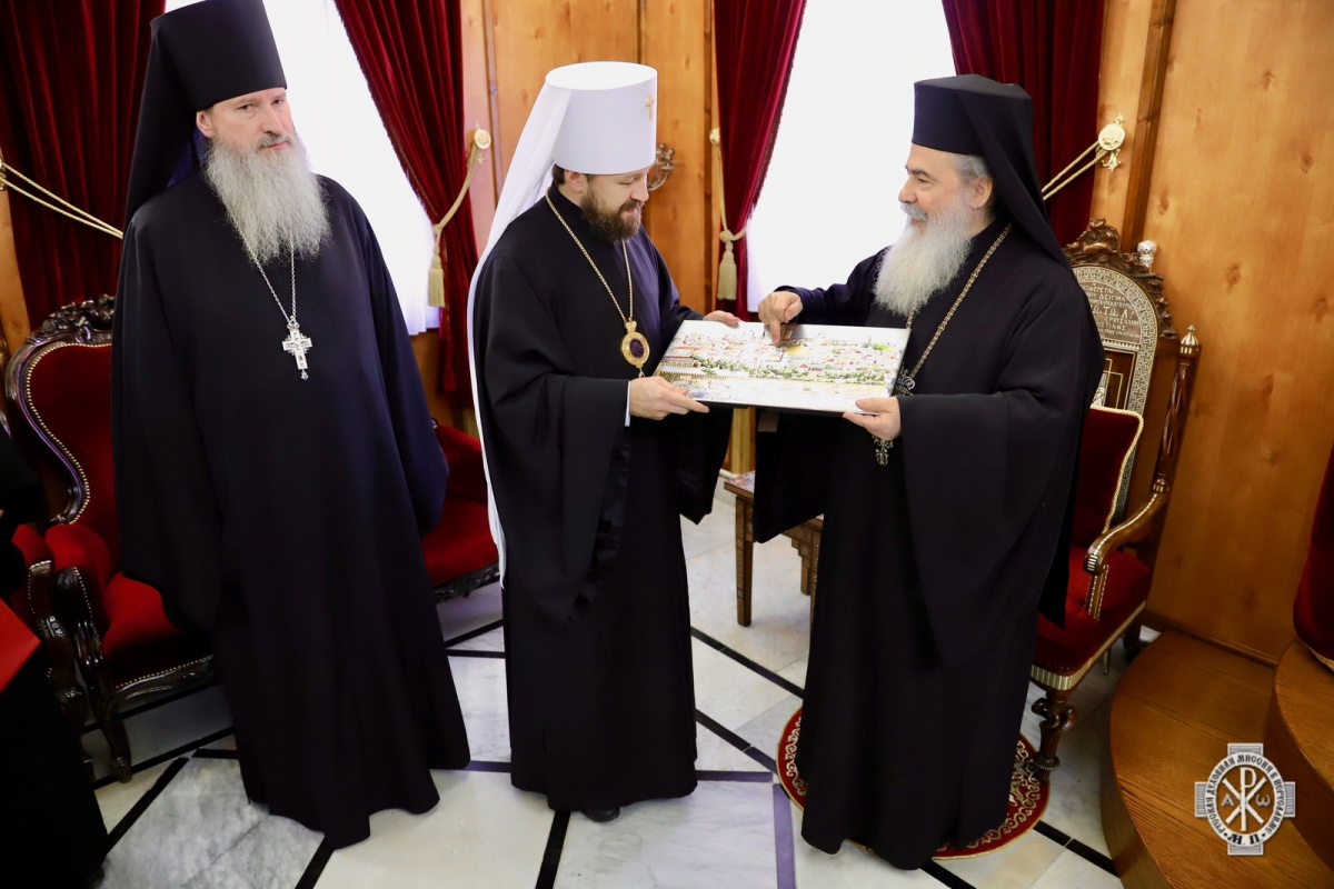On January 10, 2019, Metropolitan Hilarion of Volokolamsk, head of the Moscow Patriarchate department for external church relations (DECR), who is on a pilgrimage to the Holy Land made with the blessing of His Holiness Patriarch Kirill of Moscow and All Russia, visited the Patriarchate of Jerusalem to meet with His Beatitude Patriarch Theophilos III of the Holy City of Jerusalem and All Palestine.