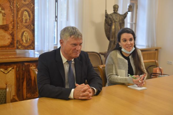 The archpastor warmly welcomed the guest to the synodal department responsible for the external contacts of the Russian Church. Mr. Lazanski, in his turn, thanked Metropolitan Hilarion for the audience.