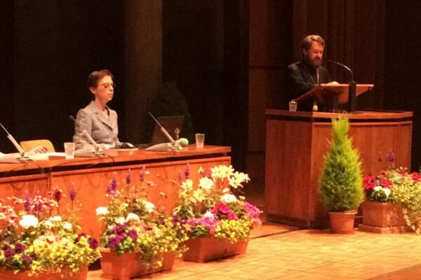 A presentation by Professor Sergei Bortnik of the Kiev Theological Academy followed. He shared with the participants in the conference his reflections on the history and present-day situation in Ukraine and on the plight of the Orthodox Church in the country. Speaking about the current ecclesiastical situation in Ukraine, and about the problem of the Ukrainian schism in particular, as well as about the creation of a structure titled “Orthodox church of Ukraine” by means of the merger of two schismatic organizations, he mentioned conflicts arising at the parochial level due to attempts to change the parishes’ jurisdictions and transfer them from the canonical Church to the newly-institutioned “OCU.” As the speaker pointed out, in most cases the core of the parish led by a priest remain faithful to the canonical Ukrainian Orthodox Church, while the vast majority of people who only occasionally attend church services and are under the influence of state and nationalistic propaganda of the time of Petro Poroshenko’s presidency, express their preference for the “new independent church.”