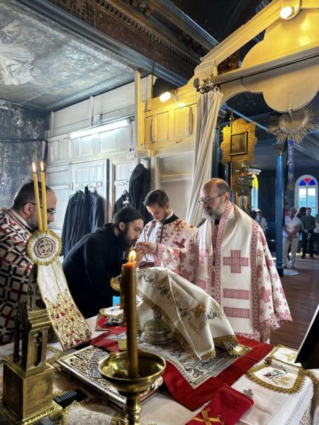 On Sunday, 23 / 10 July 2023, the 7th Sunday of Matthew, His Eminence Metropolitan Job of Pisidia, accepting the invitation of the Parish Priest of the Slavonic Community of Constantinople, the Grand Preacher Father Panaretos, presided over the Divine Liturgy, with the canonical approval and blessing of His All-Holiness Ecumenical Patriarch Bartholomew, at the Metochion of Saint Andrew of the Great and Holy Monastery of Vatopedi in Galata, with Patriarchal Deacon Fr. Epiphanios.