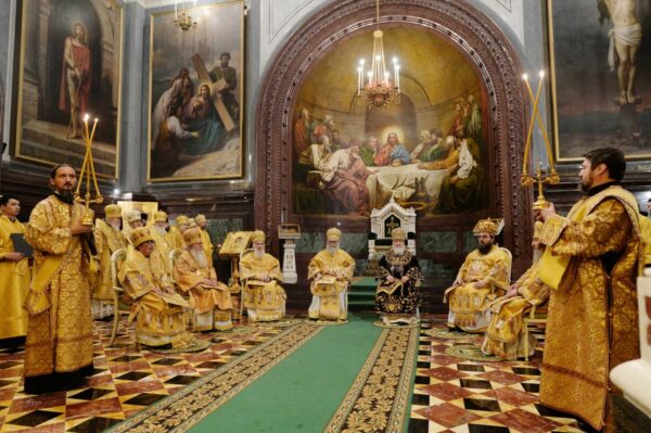 Concelebrants for the Divine Liturgy included HB Patriarch Kirill of Moscow and All Russia, HB Patriarch Irinej of Serbia, HB Metropolitan Rastislav of the Czech Lands and Slovakia, HB Metropolitan Tikhon of America and Canada (OCA), representatives of the Autocephalous Orthodox Churches, other hierarchs, priests and deacons of the Russian Orthodox Church.