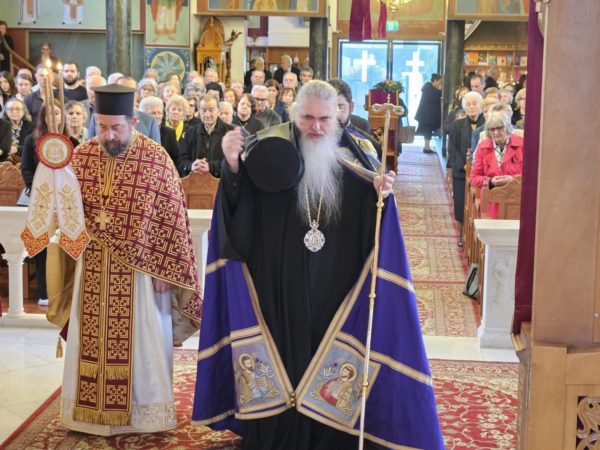 His Grace Bishop Evmenios of Chora, on behalf of His Eminence Archbishop Makarios of Australia, received with great emotion, Metropolitan Ioustinos and warmly welcomed him. He spoke about the first immigrants who, with sacrifices, sweat, and blood, built the Church on the fifth continent; who truly lived a life of the Cross, so that the new generations might have open paths before them. “Our churches,” he said, “are small in size, but great in value, because they were built with pain, love, and faith.”