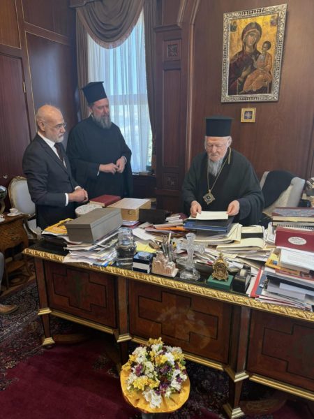 His All-Holiness Ecumenical Patriarch Bartholomew warmly received his guests in a spirit of love and hospitality, as is his custom. He asked Metropolitan Philotheos to convey his blessings and gratitude to Archbishop Ieronymos and the members of the Holy Synod for their invitation.