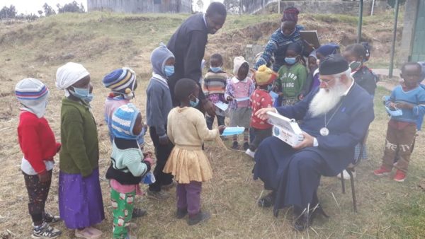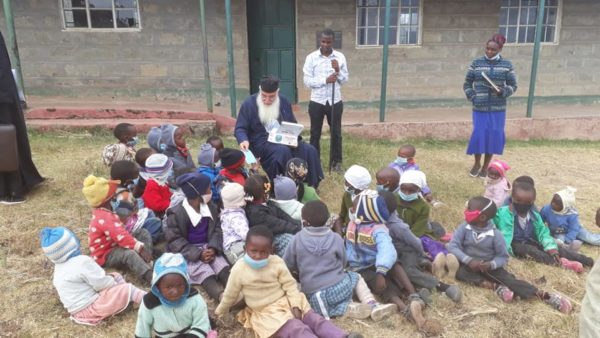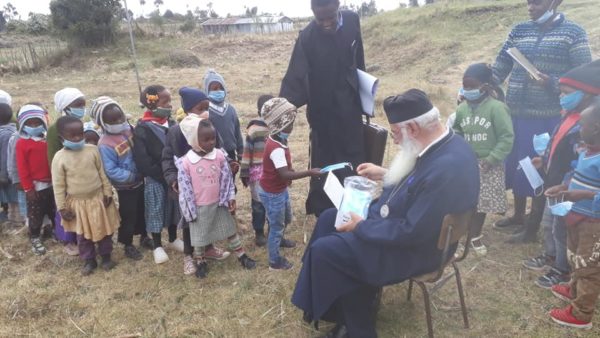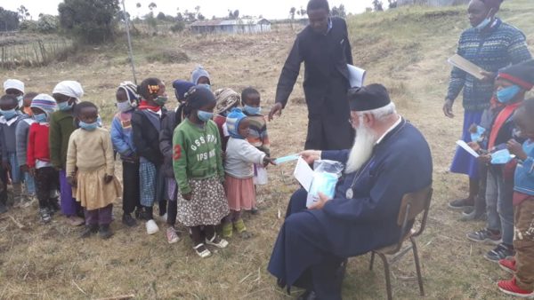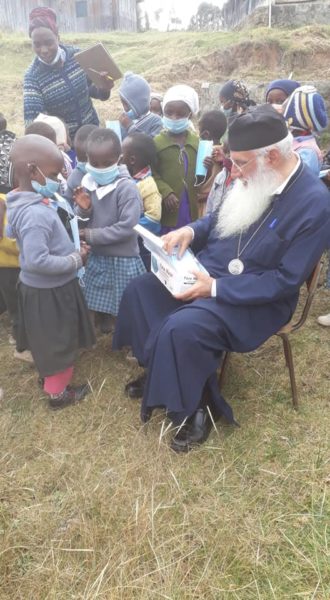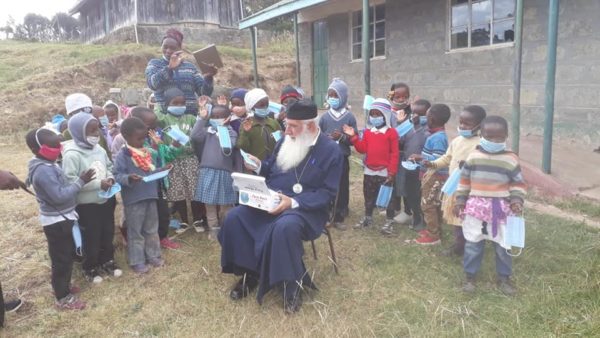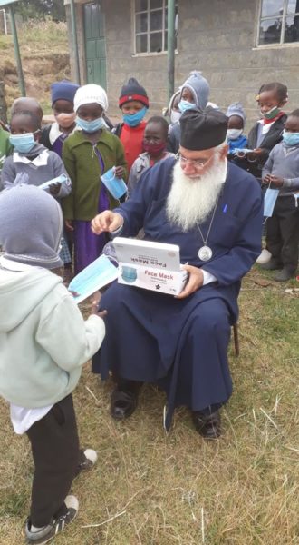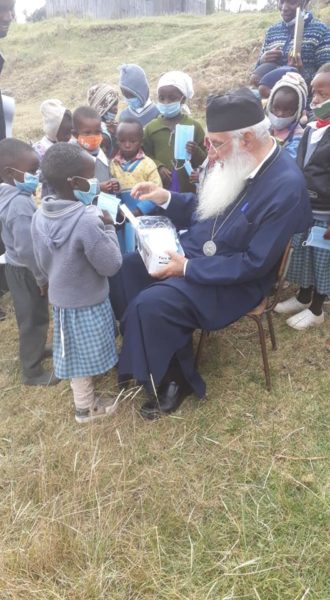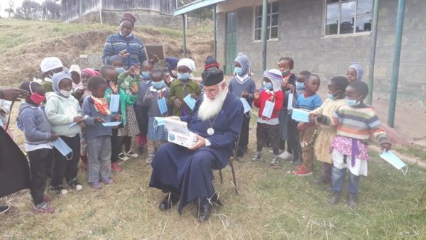 Later, His Eminence visited the parish and school of St. Raphael in Gilgil where he presented masks and calendars to the children and the teacher.