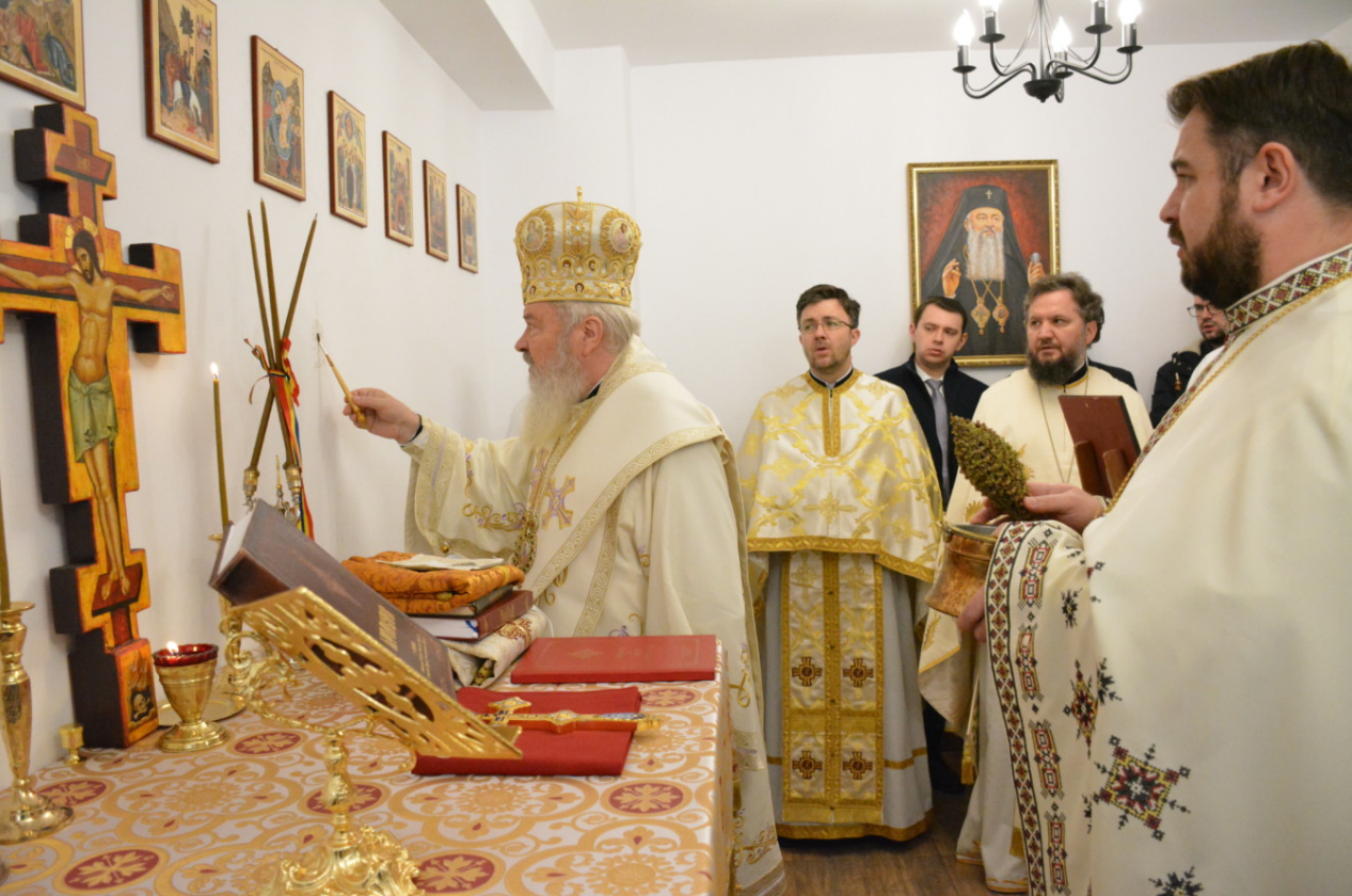Mai înainte de oficierea Sfintei Liturghii, ierarhul a binecuvântat noul paraclis închinat Sfântului Silvestru, informează Radio Renaşterea.