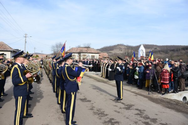 După Sfânta Liturghie a avut loc inaugurarea și sfințirea monumentului în prezența autorităților locale și județene și a numeroși credincioși.