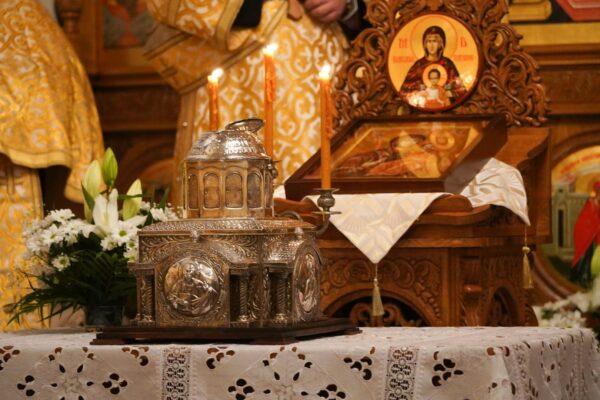 Racla a fost adusă de la Reşedinţa arhiepiscopală de o delegaţie a Centrului eparhial condusă de Arhiepiscopul Dunării de Jos, Înaltpreasfinţitul Părinte Casian, şi a fost aşezată spre închinare în lăcaşul de cult ocrotit de cei doi sfinţi străromâni.