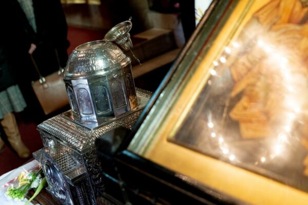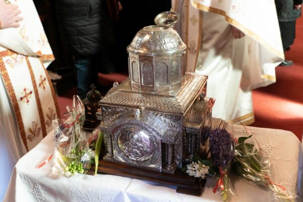 Racla a fost adusă de la Reşedinţa arhiepiscopală de o delegaţie a Centrului eparhial condusă de Arhiepiscopul Dunării de Jos, Înaltpreasfinţitul Părinte Casian, şi a fost aşezată spre închinare în lăcaşul de cult ocrotit de cei doi sfinţi străromâni.