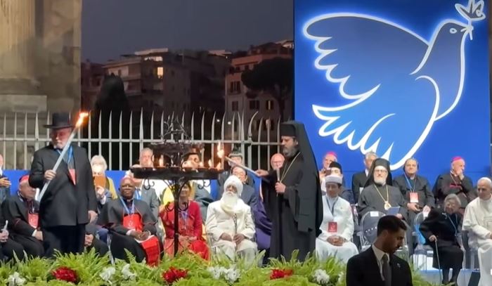 Moment nga ceremonia përmbyllëse e takimit Ndërkombëtar për paqen “Daring Peace” (Të guxosh për paqen), që po mbahet në Romë nga Komuniteti i Sant’ Egidios, ku merr pjesë Kryepiskopi i Shqipërisë, Fortlumturia e Tij, + Joani.