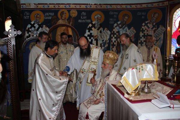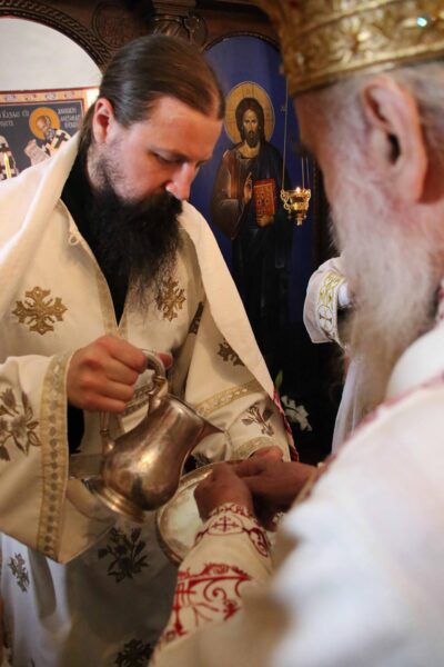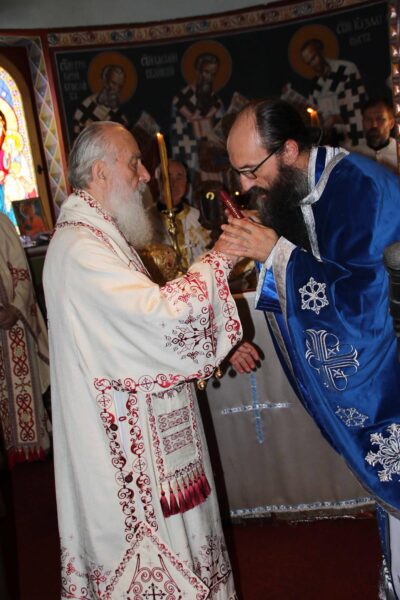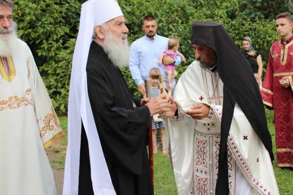 During the Liturgy His Holiness the Patriarch ordained monk Irinej (Pruginic) as hieromonk, whereas monk Andrej (Jovanovic) was ordained as hierodeacon. After the Liturgy during which commemoration prayers were offered for repose of the soul of the late abbot Archimandrite Andrej, the Patriarch blessed the feast wheat loaf with the host, guardian of this holy monastery at Slanci, hieromonk Stefan.