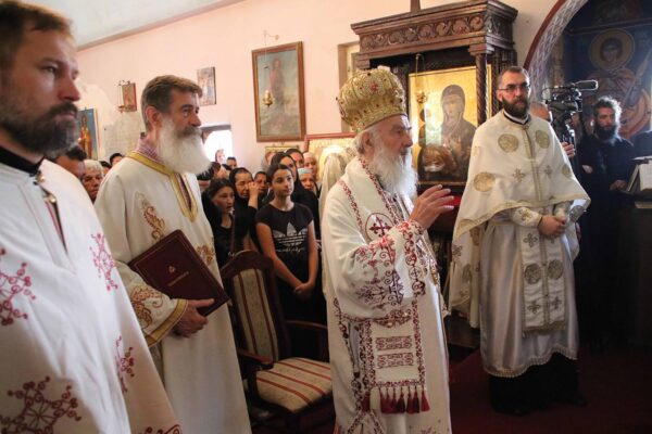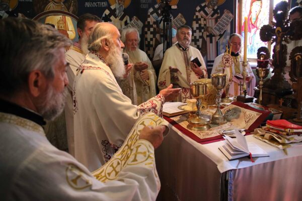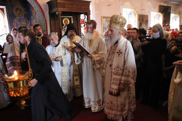 His Holiness Patriarch Irinej officiated on the occasion of the monastery church dedication day, the feast of the Translation of the relics of the Holy Archdeacon Stefan, the Holy Liturgy in the monastery dedicated to that First martyr in Slanci near Belgrade, on August 15, 2020.