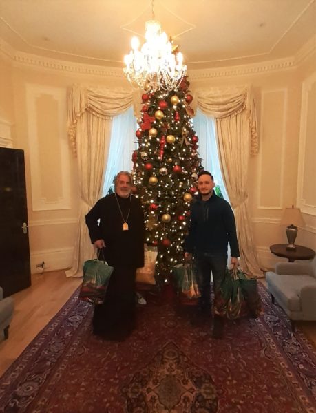 His Eminence Archbishop Nikitas of Thyateira and Great Britain received Mr. Christopher De Larrabeiti, of Potters Bar, who delivered on behalf of his family, and on behalf of Mr. Darren Grant, Mr. Zach Christopher and Mr. Serkan Menduh, non-perishable food items for the Archdiocesan Food Bank at St. Nectarios of Battersea.