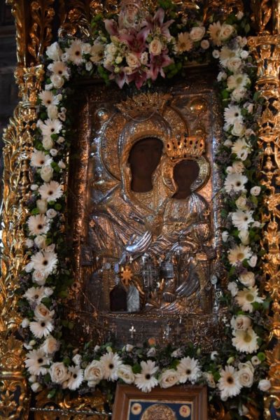 At the centre of the Katholikon, the revered icon of the Panagia Hodegetria and the precious Holy Belt radiated the grace of our Most Holy Theotokos into the hearts of the faithful who celebrated and invoked her with devotion.