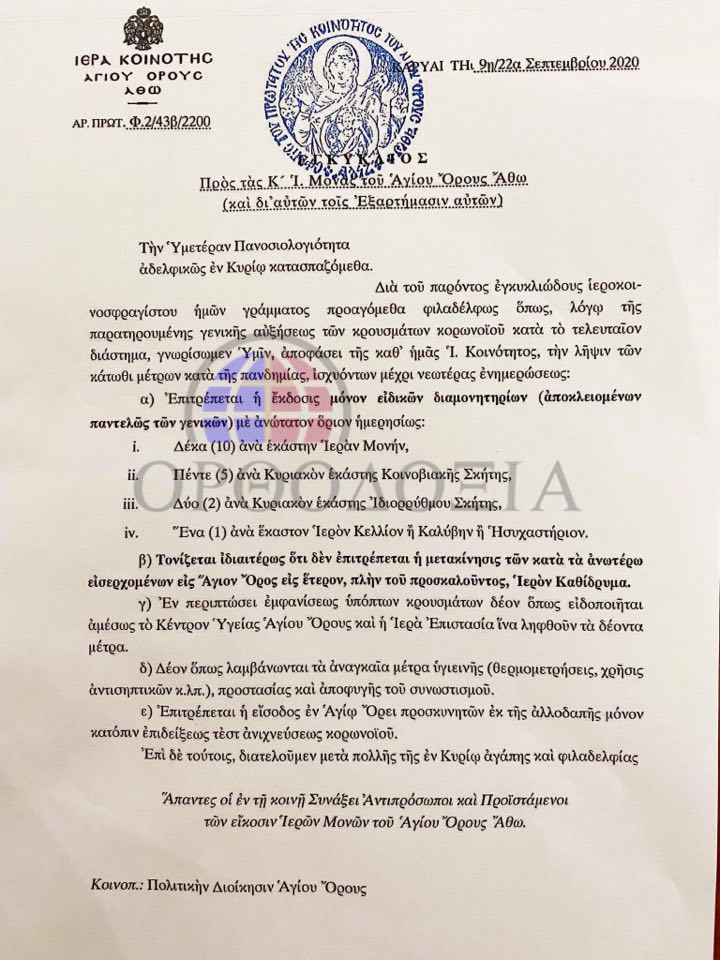 EXCLUSIVE – This is the relevant encyclical issued by the Holy Community of Mount Athos: