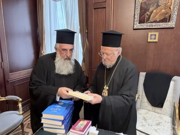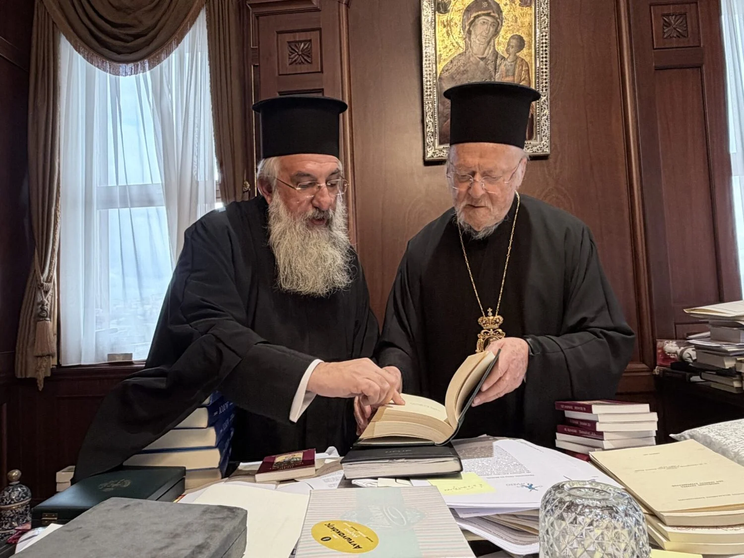 During the meeting, the Patriarch congratulated the two Metropolitans on their worthy election and wished them a fruitful and blessed pastoral ministry. As a sign of his paternal care and spiritual encouragement, he presented each of them with an episcopal engolpion and conveyed his heartfelt prayers for their service to the people of God.