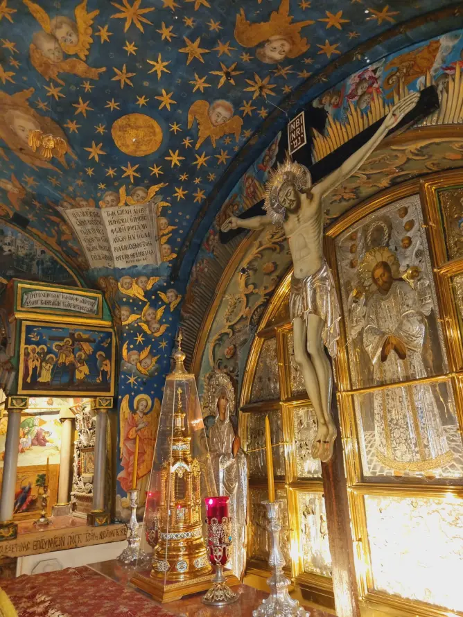 Potrivit tradiției creștine, Biserica „Sfântului Mormânt” se află pe locul răstignirii lui Iisus Hristos, denumit Golgota, cuprinzând și mormântul din apropiere.