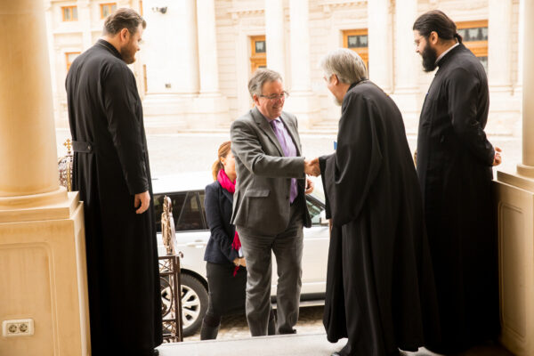 Excelența Sa a mulțumit pentru primire, subliniind faptul că se bucură să revină în România și să cunoască realitățile societății și ale Bisericii noastre eliberate de constrângerile pe care le-a constatat el însuși înainte de căderea regimului comunist.