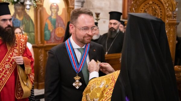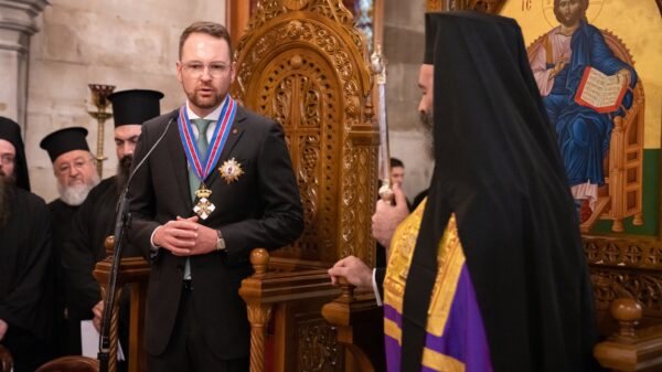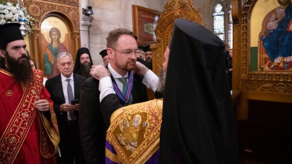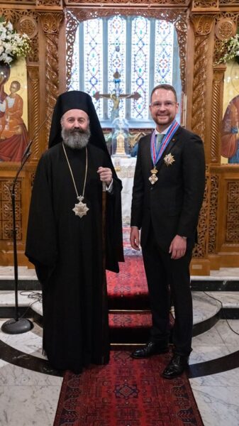 NSW’s Senator Andrew Bragg yesterday received the highest honorary distinction awarded by the Greek Orthodox Archdiocese of Australia. It was the first time that such a high distinction was bestowed to a non-Greek and a person who is not Orthodox in faith.