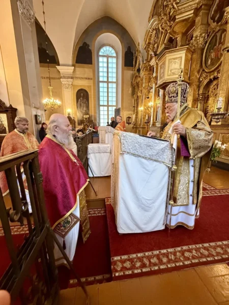 The liturgical celebration was attended by numerous clergy and faithful, as well as ecumenical guests. Among them was His Eminence Archbishop Elia of Helsinki and all Finland, His Eminence Metropolitan Gregorios of Ankara, representing His All-Holiness Ecumenical Patriarch Bartholomew, His Grace Bishop Gregorios of Messaoria, representing His Beatitude Archbishop Georgios of Cyprus, Archbishop Urmas Viilma of the Estonian Evangelical Lutheran Church and President of the Estonian Council of Churches. Also present were Philippe Jourdan, Bishop of Tallinn of the Roman Catholic Church, Erki Tamm, Vice-President of the Estonian Council of Churches, Ove Sander, Bishop of the North Estonian Diocese, Vilve Oras, Executive Secretary of the Council, and Andres Põder, Archbishop Emeritus of the Estonian Evangelical Lutheran Church.