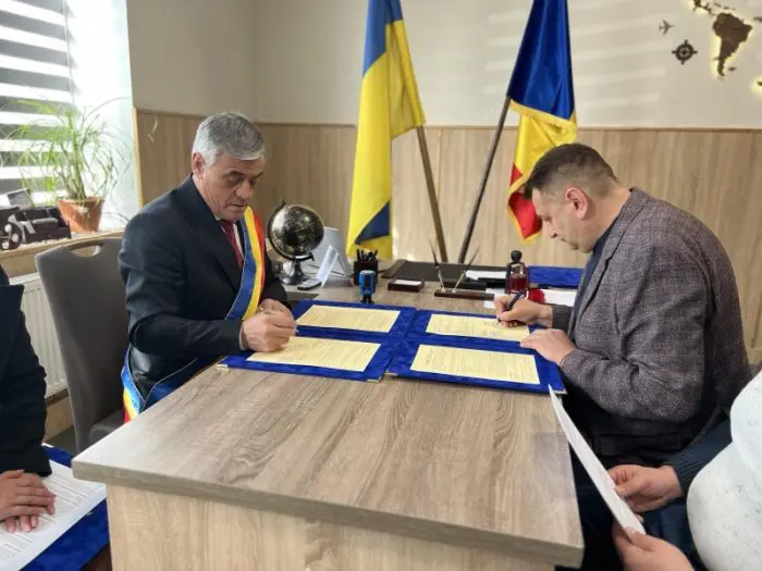 Primarii comunelor Dumbrăveni din județul Suceava și Voloca din regiunea Cernăuți au semnat luni un acord de cooperare transfrontalieră.