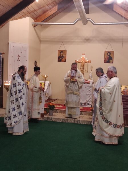Duminică, 3 noiembrie 2019, preotul paroh și credincioșii l-au primit pe Mitropolitul celor două Americi care a oficiat slujba Aghesmei și Sfânta Liturghie în noua biserică.