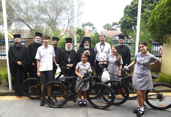 In a lovely display, His Grace also presented on behalf of His Eminence Archbishop Makarios of Australia, Primate of the Greek Orthodox church in Australia, an incredible gift of brand-new bikes to four select students at the School, who were overwhelmed with this generous offering and will rejoice in this most wonderful gift.