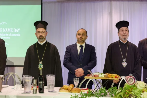 Archbishop Makarios expressed his heartfelt gratitude to all those present for the honour of their attendance, and warmly welcomed the Governor of New South Wales and the Catholic Archbishop of Sydney. In particular, he thanked the Governor for her long-standing support and active interest in the life and mission of the Holy Archdiocese of Australia, as well as for her broader contribution to the wellbeing and cultural life of the Greek community in New South Wales. He also expressed his appreciation to Ms Beazley for her support and participation in the celebrations marking the centenary of the Holy Archdiocese in 2024, which culminated in the presence of His All-Holiness Ecumenical Patriarch Bartholomew.