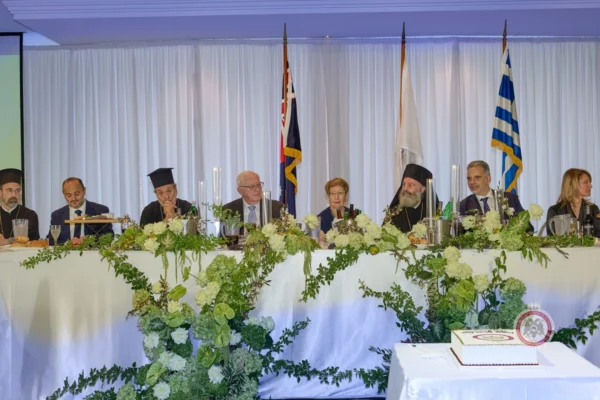 The festive event, hosted at the Le Montage Reception Centre, was honoured by the presence of the Governor of New South Wales, Her Excellency Ms Margaret Beazley AC KC, together with her husband, Mr Dennis Wilson; Their Eminences Metropolitan Seraphim of Sevasteia, Metropolitan Myron of New Zealand, Metropolitan Iakovos of Ireland, and Metropolitan Irinaios of Florina, Prespai and Eordaia; His Grace Bishop Prodromos of Toliara and Southern Madagascar; Their Graces, the God-loving Regional Bishops – members of the Holy Eparchial Synod and the Assistant Bishops of the Holy Archdiocese; the Catholic Archbishop of Sydney, Archbishop Anthony Fisher; the State Minister Ms Sophia Kotsis, representing the Premier of New South Wales, Mr Chris Minns; other Ministers and Members of Parliament; the Ambassador of Greece to Australia, Mr Stavros Venizelos; the High Commissioner of Cyprus to Australia, Mr Antonios Sammoutis; the Mayor of Florina, Mr Vasileios Giannakis; clergy; Archons of the Ecumenical Patriarchate; and Presidents and representatives of Parishes–Communities, organisations and institutions of the local Church, among many others.