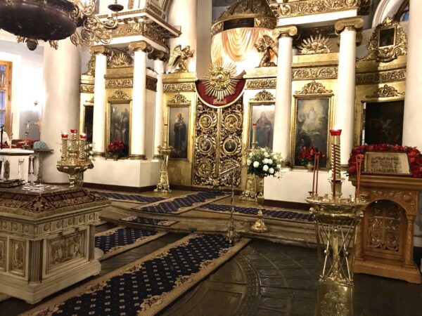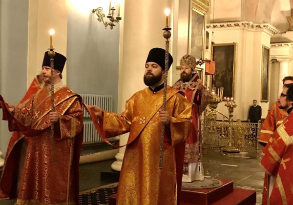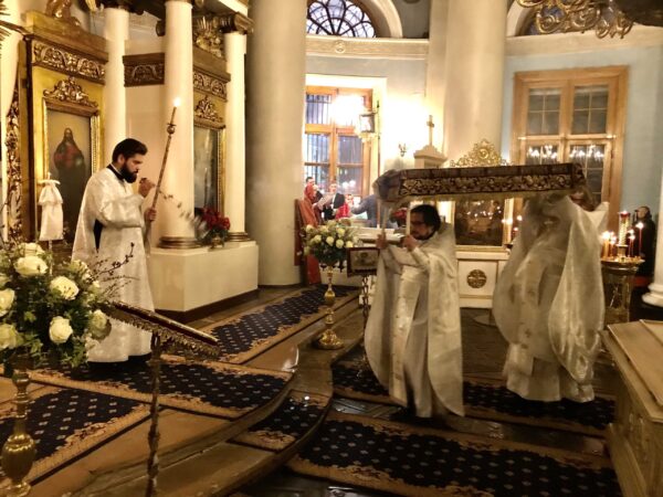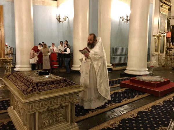 “The divine service that we will begin in several minutes will correspond to that remarkable moment when the women came to the tomb of the Saviour, but did not find Jesus’s body, having seeing an angel in the empty tomb instead. According to the church tradition, we should have gone outside now with the procession of the cross in order to bear witness to the Resurrection of Christ, but tonight the procession will take place inside the church. Then we will proclaim the glad tidings: “Christ is Risen!” and will celebrate the Resurrection of Christ.