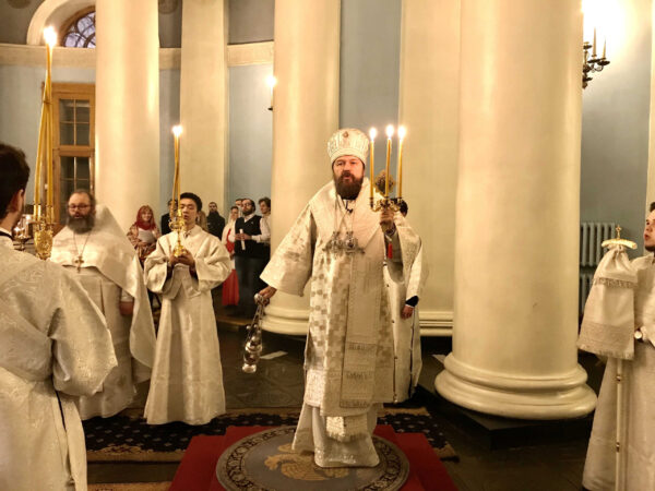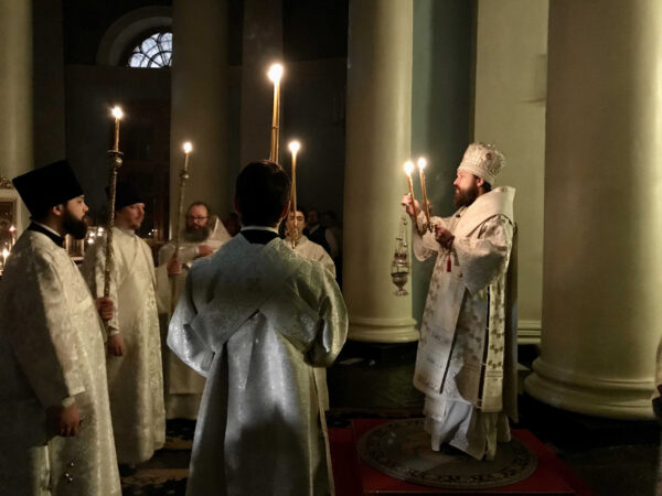On Easter night Metropolitan Hilarion of Volokolamsk celebrates festal divine service