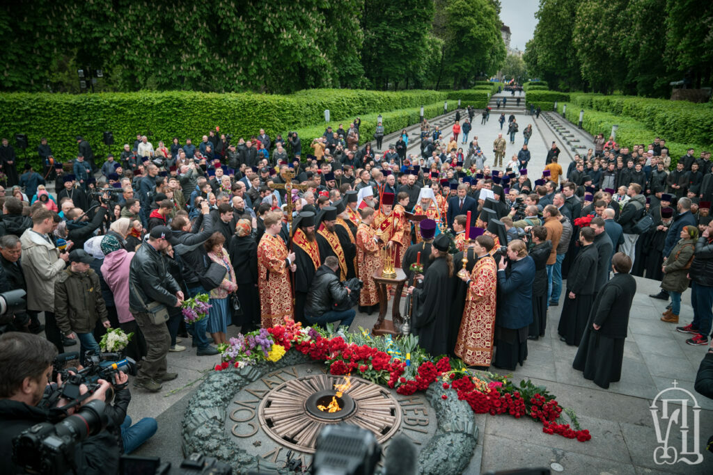 On May 9, 2019, on the Victory Day over the Nazi invaders, at the stele on the Tomb of the Unknown Soldier in the territory of the Park of Eternal Glory in Kiev, Primate of the UOC Metropolitan Onufry of Kiev and All Ukraine held a religious service for the died during the Great Patriotic War, reports the UOC Information and Educational Department.