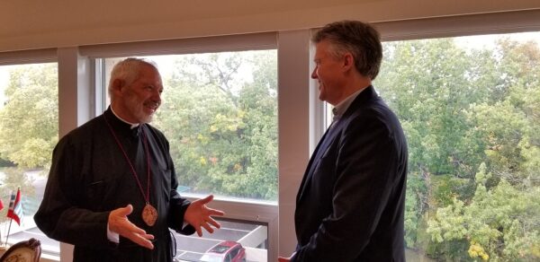 Following a tour of the Archdiocesan offices and the private residence of the Archbishop, both leaders had an extensive conversation in the office of His Eminence, where they discussed various issues facing the people of Ontario and society more broadly. The Archbishop, who is currently a member of the Holy and Sacred Synod of the Ecumenical Patriarchate, raised the plight of Christians in Turkey, as well as in the Middle East.