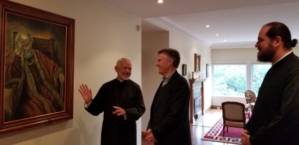 The Hon. Rod Phillips, Minister of Finance for the Government of Ontario, visited the Greek Orthodox Archdiocese of Canada on Saturday, October 12, 2019. His Eminence Archbishop Sotirios warmly welcomed the Minister and began the visit with a tour of the Archdiocesan headquarters.