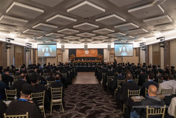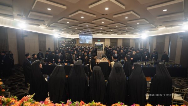 Afterwards, His Eminence Archbishop Makarios of Australia welcomed the distinguished speakers and participating clergy. A prerecorded video message from the Ecumenical Patriarch was then shown, followed by an address from Metropolitan Apostolos of Miletus, who officially declared the commencement of the Synaxis’ proceedings.