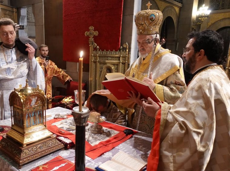 Metropolitan Emmanuel co-celebrated with Archimandrite Alexis Milyutin, priest of the St. Nicholas church of Toulouse, and Protopresbyter Panagiotis Xenitelis, presiding priest of St. Stephanos Cathedral.