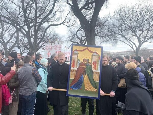 The day of the March, Friday, January 24, began with the Divine Liturgy for the feast of St. Xenia of St. Petersburg celebrated at the St. Nicholas Cathedral in the capital by His Beatitude Metropolitan Tikhon (OCA) and a number of other OCA bishops, including His Grace Bishop David of Santa Rosa, who celebrated the 5th anniversary of his consecration as a bishop that day, Bishop Thomas of Charleston of the Antiochian Archdiocese, and Bishop Apostolos of Medeia of the Greek Archdiocese.