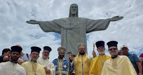 On the occasion of Wednesday’s feast day of Andrew, the First-Called Apostle, an outdoor Divine Liturgy was celebrated by the Metropolitan of Buenos Aires and South America, His Eminence Iosif, atop Mount Corcovado, where the iconic statue Christ the Redeemer overlooks Rio de Janeiro. The Metropolitan of the Patriarchate of Antioch and All the East in Brazil, His Eminence Damaskinos, and other Orthodox clerics of Autocephalous Orthodox Churches co-officiated, along with numerous faithful.